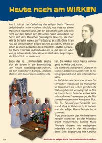 Konfrontiert mit der vielfältigen Not in der Welt, sah sich auch die selige Maria Theresia Ledochowska in ihrer Zeit, und erkannte die einzige Möglichkeit der Bekämpfung aller Übel in der Welt, durch ein Handeln nach dem Evangelium: Nächstenliebe, Mitleid, Barmherzigkeit, Solidarität. Sie wurde nicht müde, auch in solchen Situationen, wie zum Beispiel im 1. Weltkrieg, um Wege zur Hilfe an Missionare zu suchen und nützte sie.